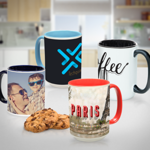 Print everything from family photos to company logos on our sturdy custom mugs. Available in 3 convenient sizes with various trim options.