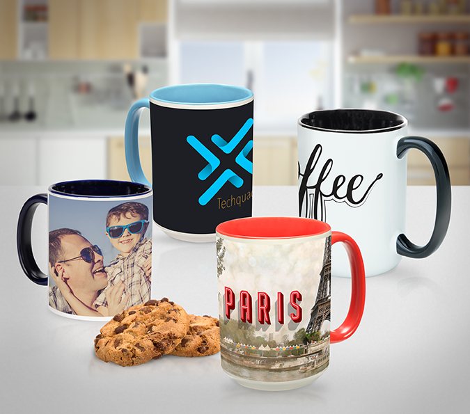 Print everything from family photos to company logos on our sturdy custom mugs. Available in 3 convenient sizes with various trim options.